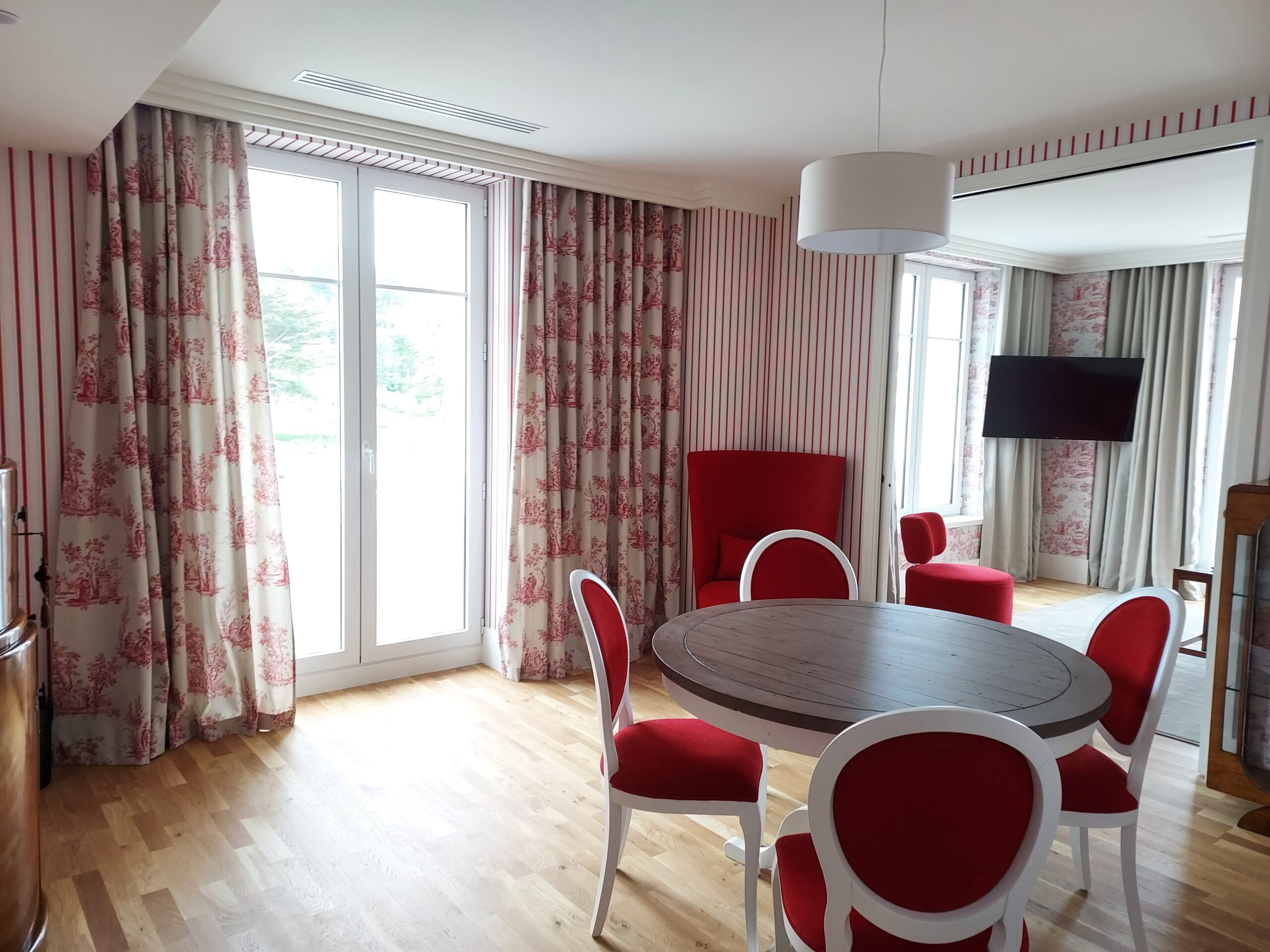 Isotiss a confectionné et installé les rideaux des chambres, et salles de bain :
