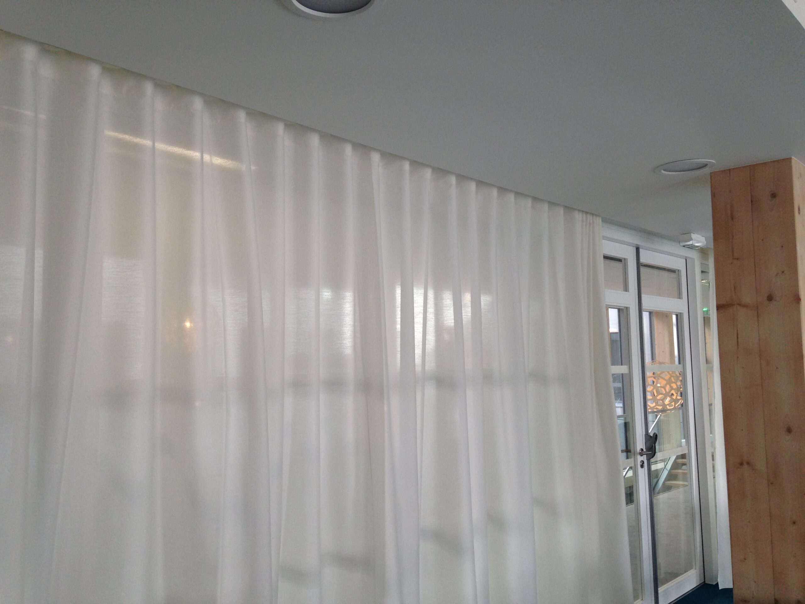 Voilage acoustique ultra performant, transparent, classé non feu M1. Ce tissu a une allure de textile doux, avec pas moins de 24 tons chauds et naturels, il se confectionne recto-verso. Vous pourrez jouer avec la lumière grâce à l’envers brillant.